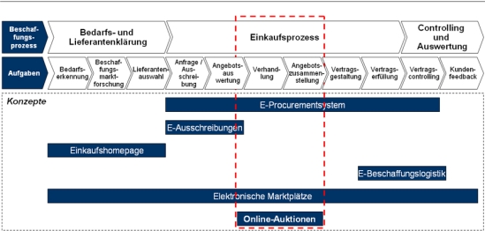 Dem Beschaffungsmanagement stehen durch den Einsatz der weltweit verbreiteten Kommunikationsplattform des Internets moderne Instrumente zur Verfügung, um die Einkaufseffizienz zu steigern. Internetbasierte Technologien können den Einkauf in nahezu allen Beschaffungsprozessen unterstützen und Materialkosten sowie Kosten des operativen Beschaffungsprozesses deutlich senken. Online-Auktionen bieten viele Vorteile. Sie erreichen bei Bedarf eine sehr hohe Anzahl an möglichen Lieferanten – was die Chancen attraktiver Angebote erhöht. Die Anonymität des Internets reduziert das Risiko von Preisabsprachen deutlich und automatisierte Abwicklungsprozesse reduzieren den Bearbeitungsaufwand enorm.