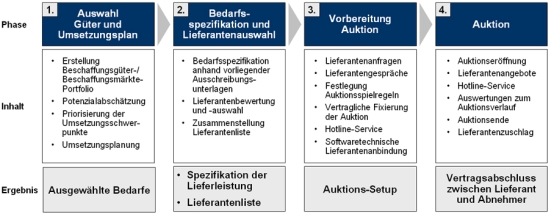In Phase 3 wird die Online-Auktion entsprechend der Spezifikation der Lieferleistung für ein konkretes Beschaffungsgut gestaltet.
