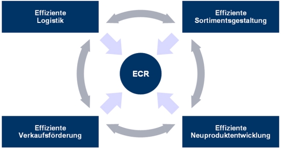 ECR beschreibt die enge Kooperation zwischen Herstellern und Händlern. Im wettbewerbsintensiven Konsumgütermarkt ergeben sich dadurch Logistikpotenziale und eine bessere Befriedigung von Konsumentenbedürfnissen.