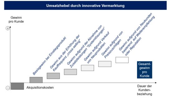 Neue innovative Vermarktungskonzepte zielen natürlich auf die gleichen Umsatzhebel ab wie die klassischen Ansätze. Nur eines ist sicher, die alten Vermarktungskonzepte greifen bei innovativen Technologien und Geschäftsmodellen immer weniger.