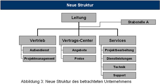 Es hat sich gezeigt, dass eine strategische inhaltliche Neuausrichtung häufig auch einer organisatorischen Veränderung bedarf, da sich Rahmenbedingungen, Ziele, Aufgaben und Prozesse der jeweiligen Bereiche im Wettbewerbsumfeld verändert haben. Im Rahmen des betrachteten Projektes gelang es, die funktionalen Anforderungen der internen und externen Kunden mit der neuen strategischen Ausrichtung zu kombinieren und hierauf aufbauend eine zukunftsgerichtete schlanke Organisationsstruktur zu schaffen.